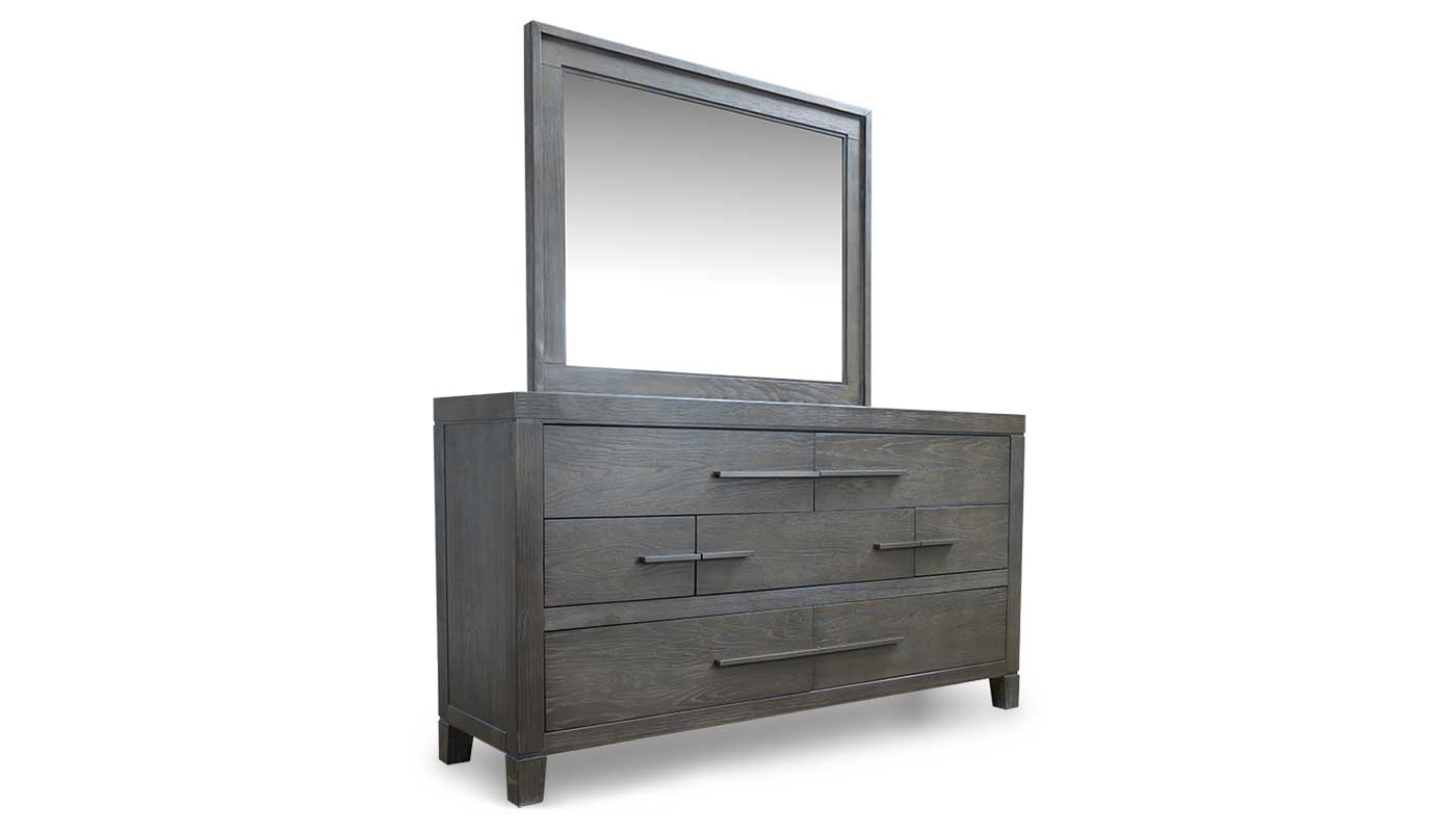 Between beautiful styling and lots of storage, beauty sleep just became better. The Accolade collection is made of pine solids and Oak veneers then finished in Grey for a sophisticated, timeless look. The stylish bed features two oversized storage drawers with sleek silver finished hardware, which is used throughout the collection. Open any of the drawers to find they are lined with Cedar, a feature rarely found anymore. Additional quality features are: fully finished drawers inside and out, English dovetailed for added strength, and upgraded ball bearing glides for ease of use. The nightstand features a built-in power pack for all your charging needs and a built-in night light as well. Best of all, you will sleep great knowing you bought this superior-built bedroom for a fraction of the cost at other stores!!