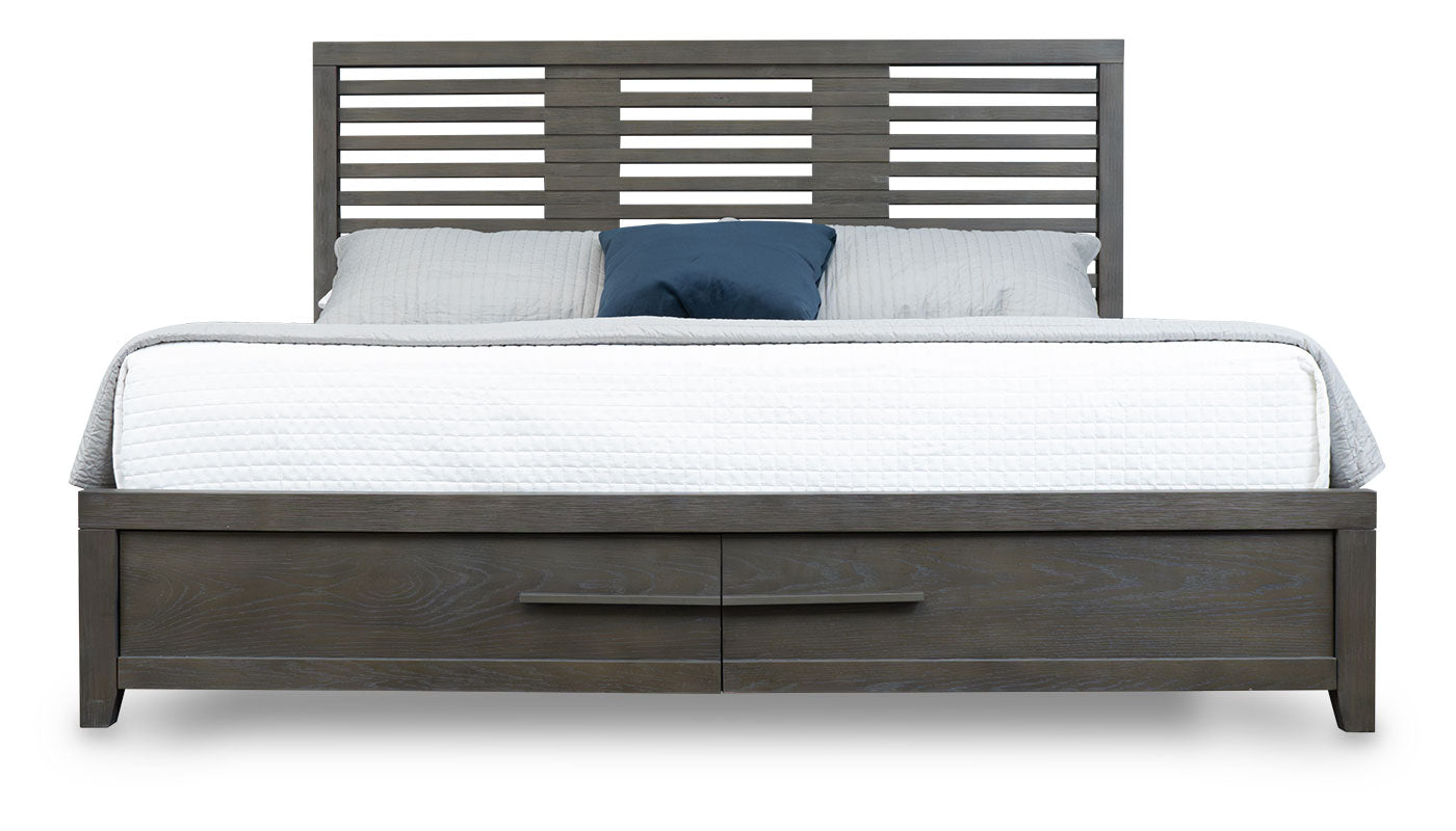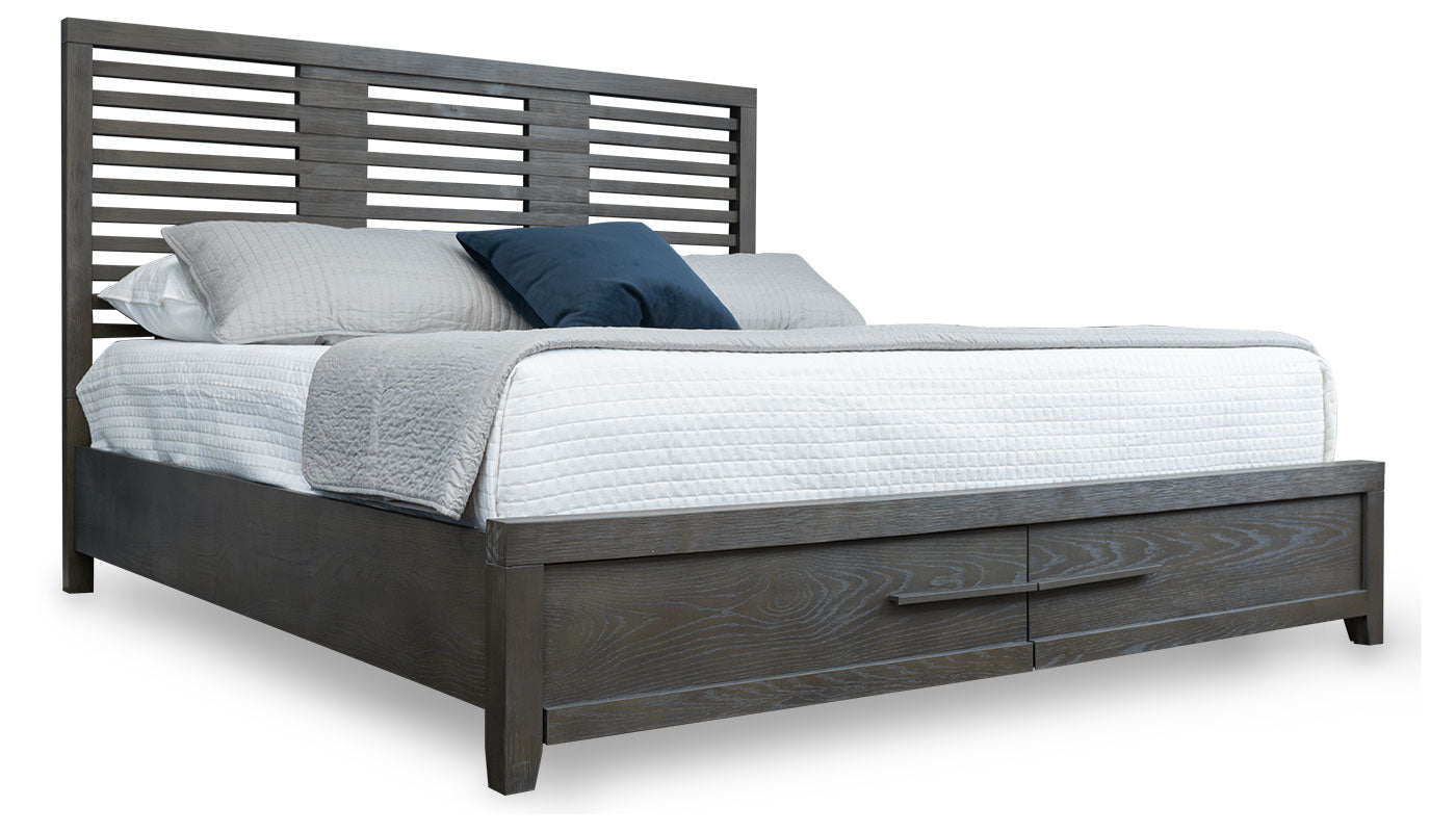 Between beautiful styling and lots of storage, beauty sleep just became better. The Accolade collection is made of pine solids and Oak veneers then finished in Grey for a sophisticated, timeless look. The stylish bed features two oversized storage drawers with sleek silver finished hardware, which is used throughout the collection. Open any of the drawers to find they are lined with Cedar, a feature rarely found anymore. Additional quality features are: fully finished drawers inside and out, English dovetailed for added strength, and upgraded ball bearing glides for ease of use. The nightstand features a built-in power pack for all your charging needs and a built-in night light as well. Best of all, you will sleep great knowing you bought this superior-built bedroom for a fraction of the cost at other stores!!
