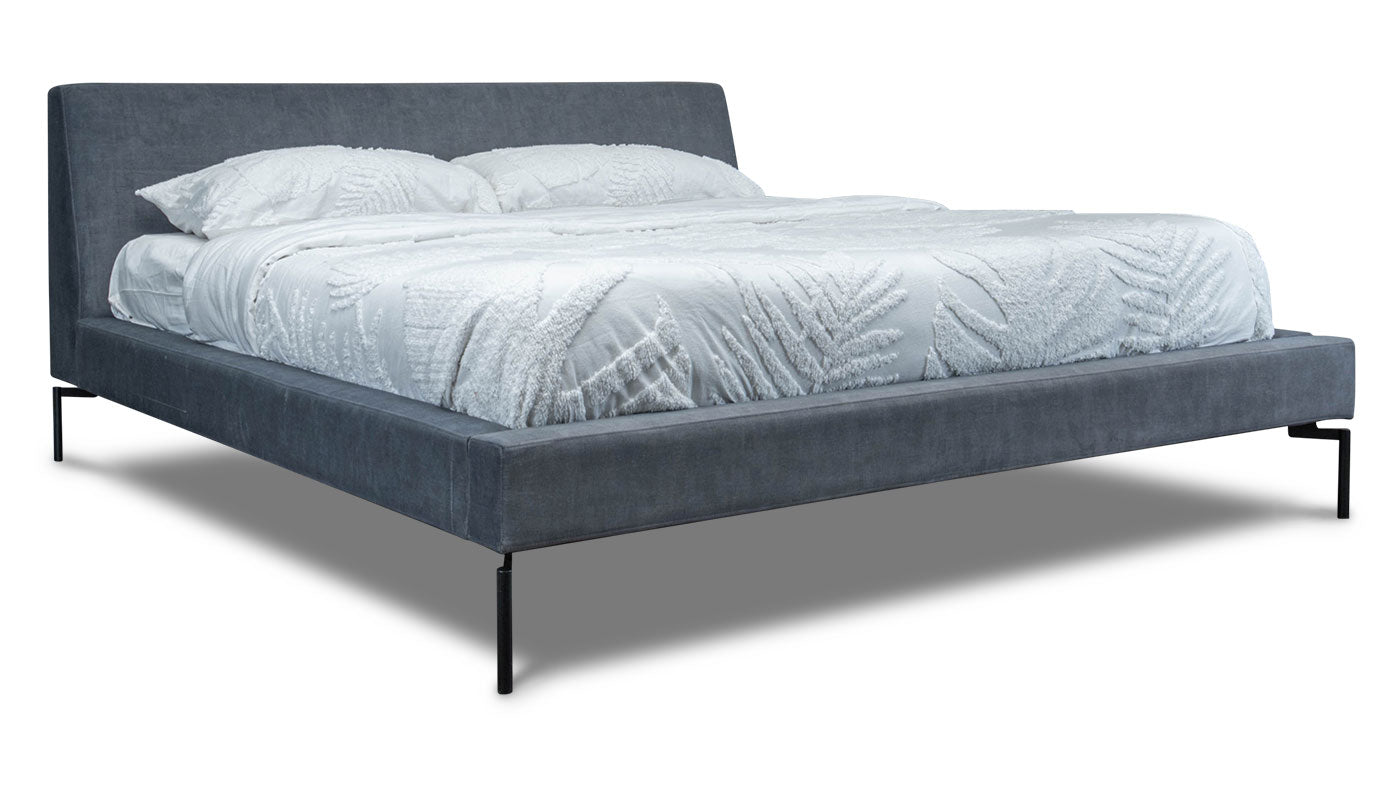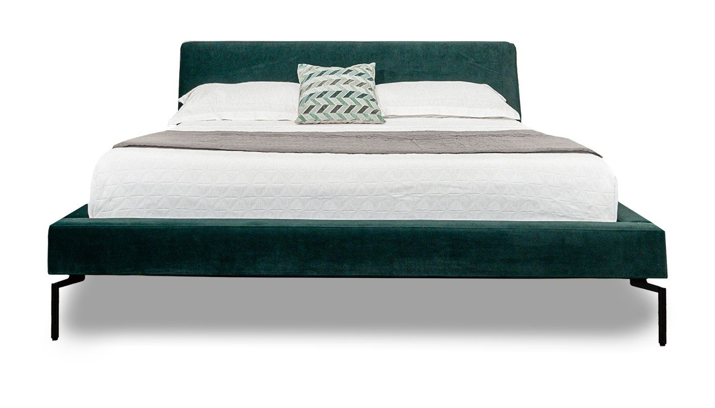 Our Andes bed stands apart from all others in the spirit of subtle sophistication. This stylish contemporary bed features a low-profile, platform design with cast-iron legs. It is finished in a luxurious velvet fabric and available in two colors - Grey or Verde. Let the contemporary lines of our Andes bed bring a modern vibe to your bedroom.