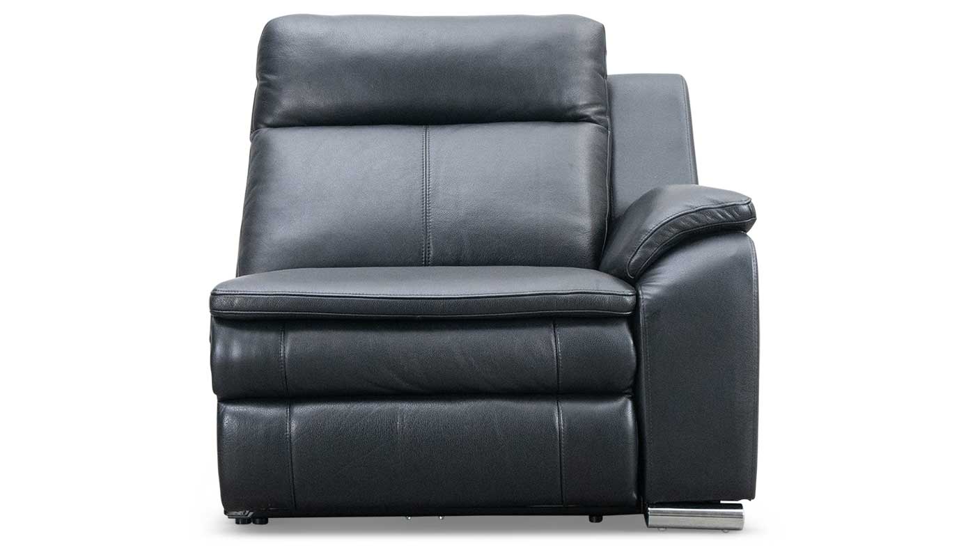Indulge in ultimate comfort and luxury with our Archer power reclining sectional. Crafted with precision and designed for relaxation, this sectional is upholstered in rich black Top Grain Leather, offering a sleek and sophisticated appearance. The premium mechanisms ensure smooth and reliable power reclining, while the integrated power headrest allows you to find the perfect position for lounging. Our Archer sectional features plush pillow-top cushions that provide exceptional comfort and support, making it the perfect choice for long movie marathons or relaxing evenings at home. The built-in console is a true standout, equipped with a convenient light, wireless charger, and hidden cup holders to keep your beverages within easy reach. Our Archer power reclining sectional combines modern technology with timeless style, elevating your living space with both functionality and elegance.