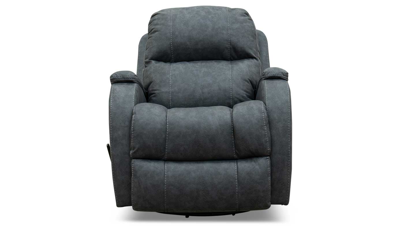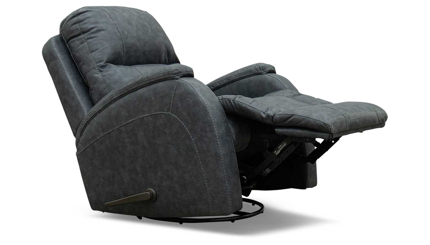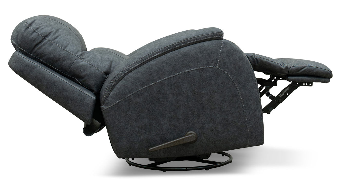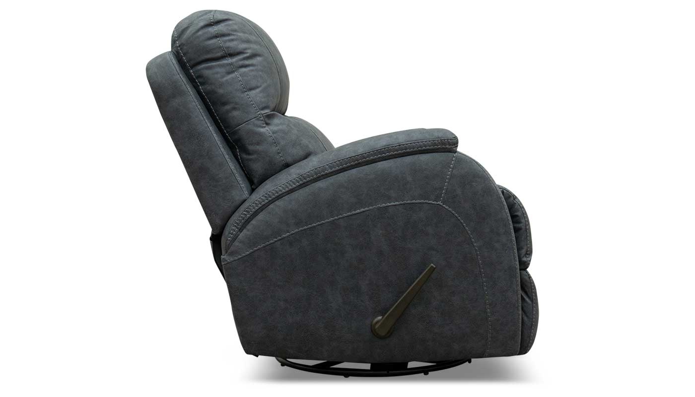 Designed to provide the ultimate in comfort and support, the Bolero swivel recliner is sure to be your relaxation destination. Crafted with meticulous attention to detail, this recliner is constructed using high-quality materials with a sturdy frame to ensure durability and longevity. This swivel recliner features a subtle scoop seat, a solid foam track arm, and a pad-over chaise for extra leg support. It is upholstered in a polyester, faux leather fabric making it easy to maintain and clean. The Bolero swivel recliner sits atop a 360-degree swivel pedestal base, allowing you to effortlessly change positions without moving the chair. While the manual reclining mechanism lets you effortlessly adjust your seating position to find the perfect angle for relaxation. The Bolero swivel recliner is designed to provide you with the ultimate lounging experience. Made in the USA. It is rated to hold up to 275 lbs and available in graphite, pebble, and taupe.