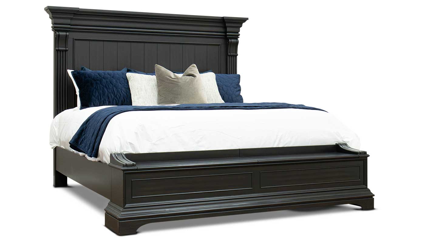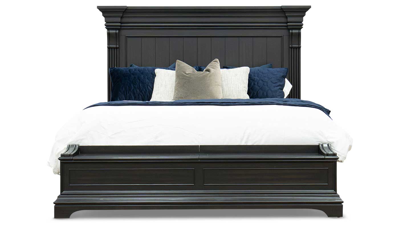 Experience luxury and refinement with the Clinton bedroom collection, where every detail exudes opulence and timeless appeal, transforming your bedroom into a sanctuary fit for royalty. Crafted with the finest pine solids adorned with an opulent Acacia veneer, each piece radiates grandeur and enduring charm. The centerpiece of this collection is the bed, featuring a strikingly tall headboard and majestic footboard with discreet storage, offering both style and functionality. Meticulously crafted drawers showcase French and English dovetail construction, ensuring durability and refinement, while the ball-bearing glide systems provide smooth and effortless operation. Embrace the regal ambiance with the addition of nightstands boasting a power pack and LED nightlight, seamlessly blending modern convenience with traditional allure. Our Clinton bedroom collection is a regal testament to timeless elegance and classic sophistication.