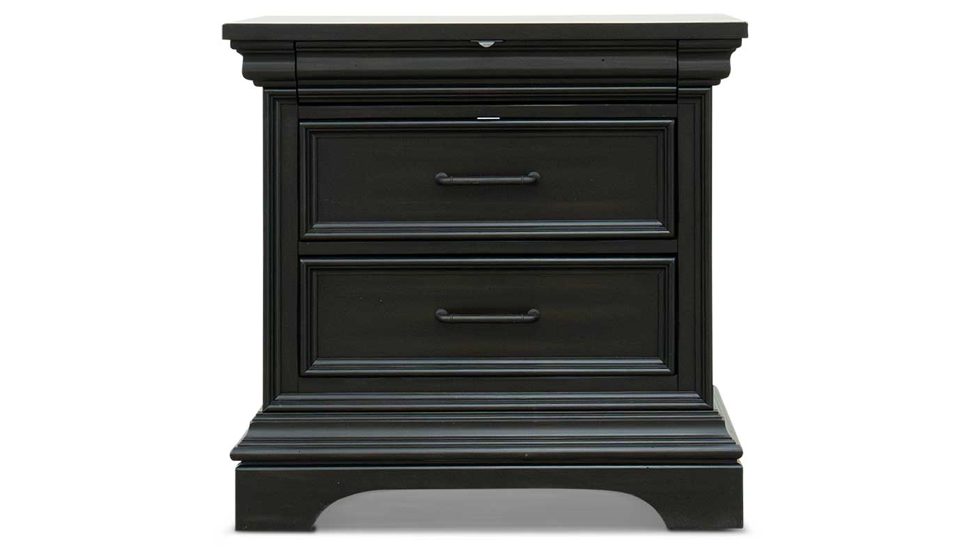 Experience luxury and refinement with the Clinton bedroom collection, where every detail exudes opulence and timeless appeal, transforming your bedroom into a sanctuary fit for royalty. Crafted with the finest pine solids adorned with an opulent Acacia veneer, each piece radiates grandeur and enduring charm. The centerpiece of this collection is the bed, featuring a strikingly tall headboard and majestic footboard with discreet storage, offering both style and functionality. Meticulously crafted drawers showcase French and English dovetail construction, ensuring durability and refinement, while the ball-bearing glide systems provide smooth and effortless operation. Embrace the regal ambiance with the addition of nightstands boasting a power pack and LED nightlight, seamlessly blending modern convenience with traditional allure. Our Clinton bedroom collection is a regal testament to timeless elegance and classic sophistication.