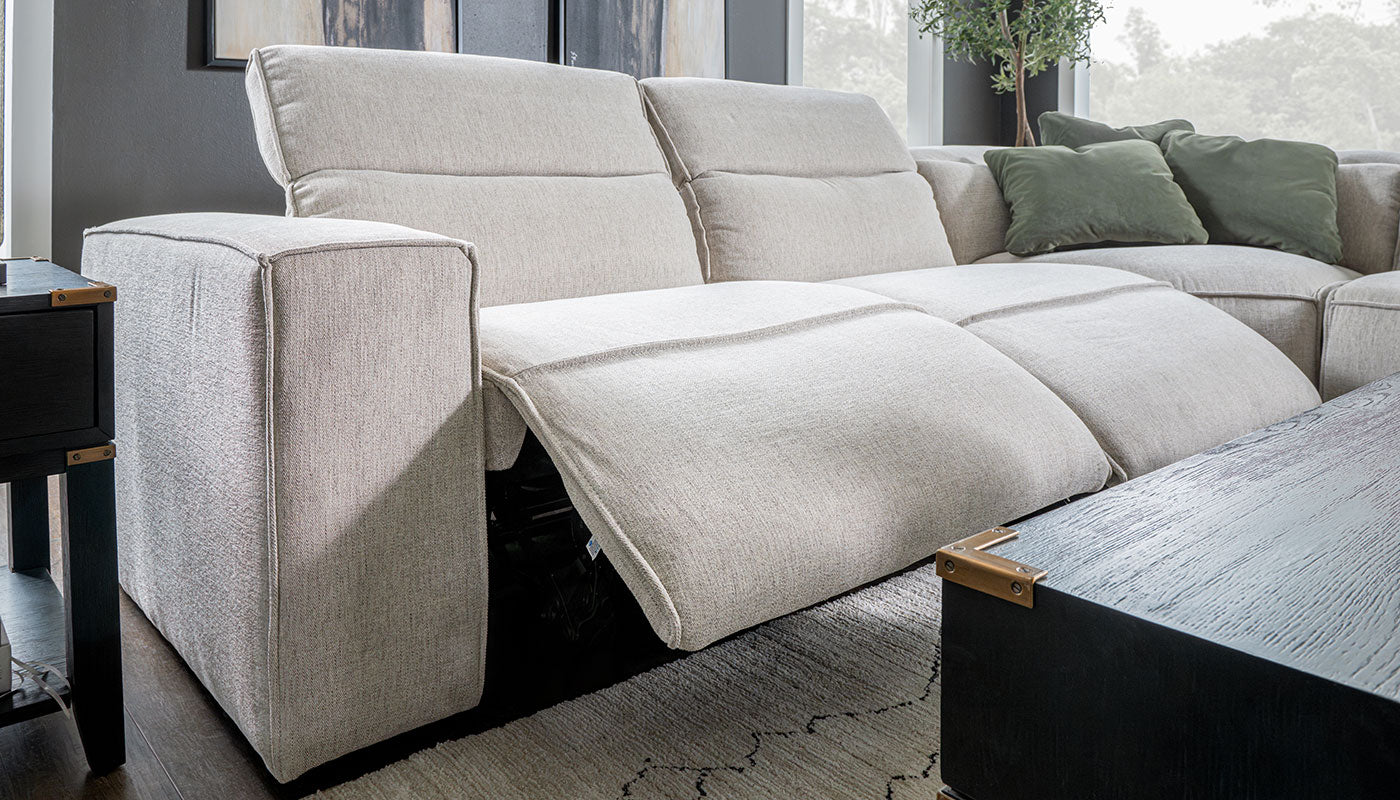 Discover the perfect blend of luxury and functionality with our contemporary Colter II power reclining sectional. Upholstered in a soft dove-colored 100% polyester fabric, this sectional exudes modern elegance while being durable and easy to maintain. Our Colter sectional is engineered with premium mechanisms, offering smooth and effortless power reclining at the touch of a button. The added feature of a power headrest ensures personalized comfort, making every seating experience a relaxing retreat. Sink into the plush cushions, crafted with sinuous coils and down and feather seating, providing unmatched support and coziness. The modular design allows for versatile configurations, making it a seamless fit for any living space. Our Colter II power reclining sectional is designed to elevate your living room, combining contemporary style with superior comfort.