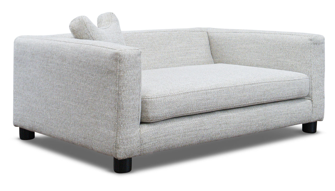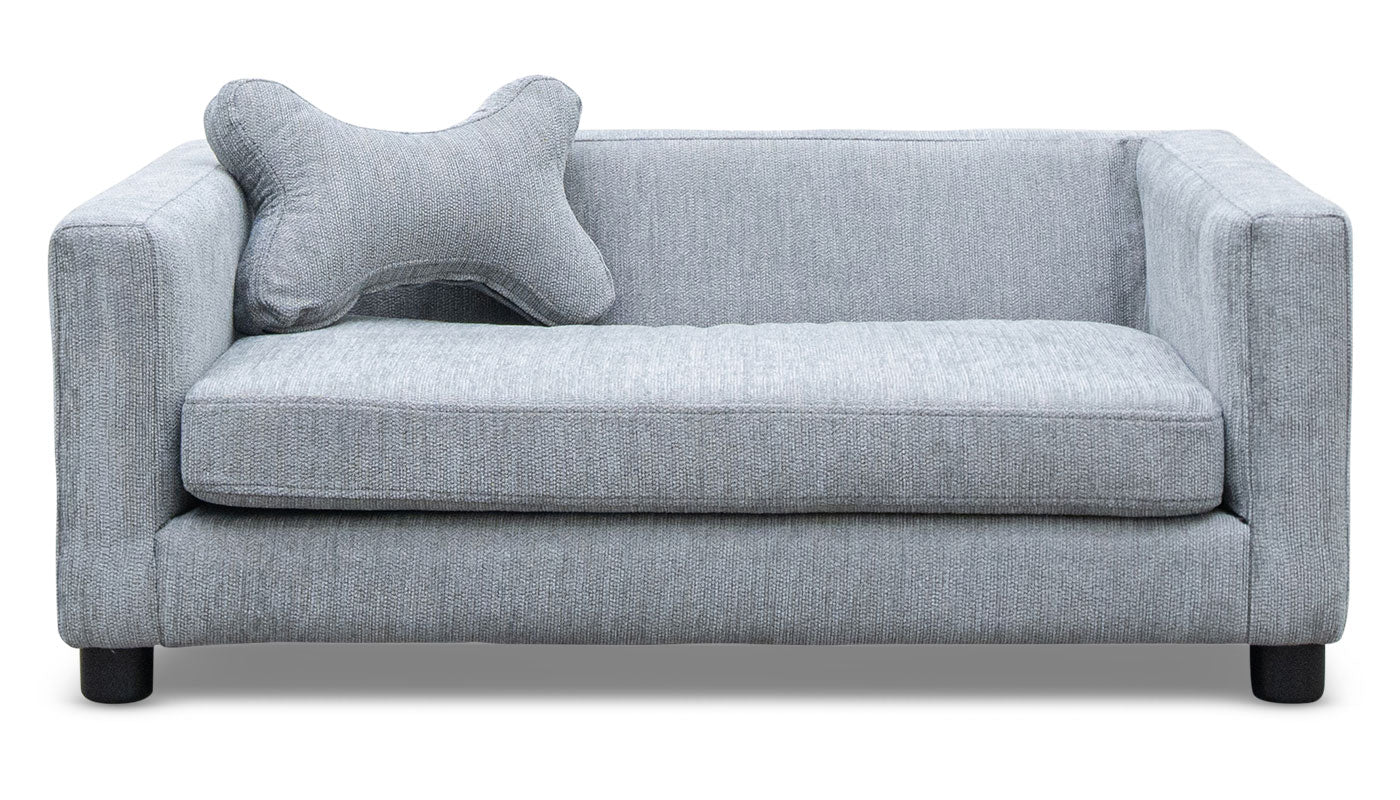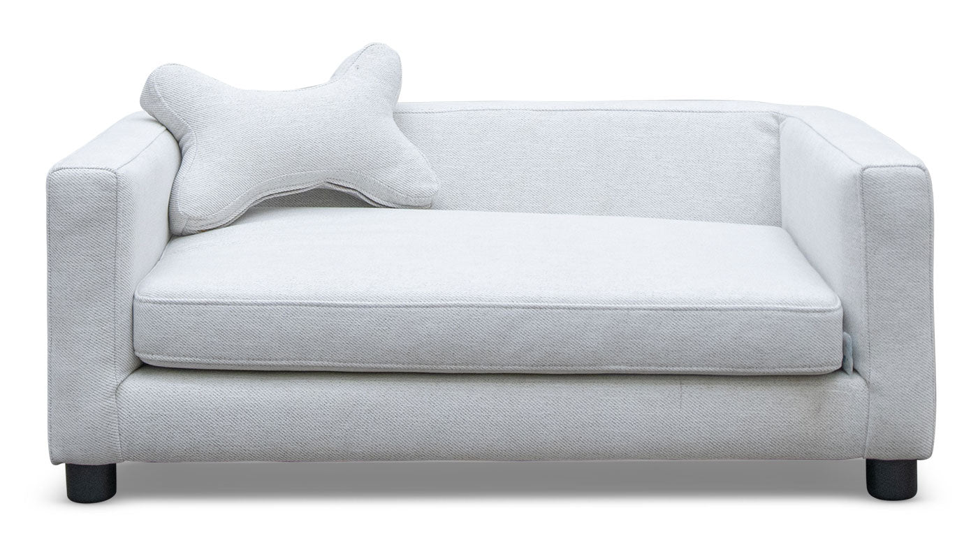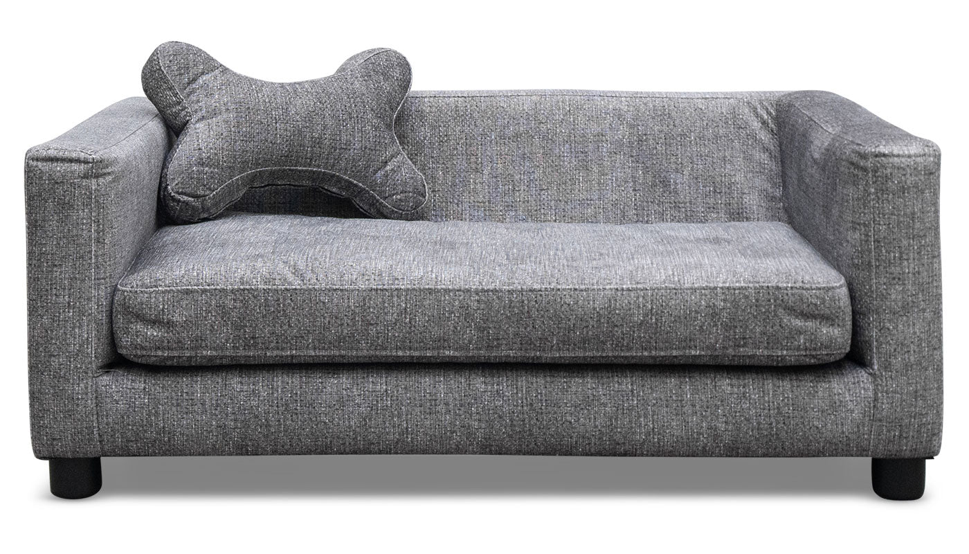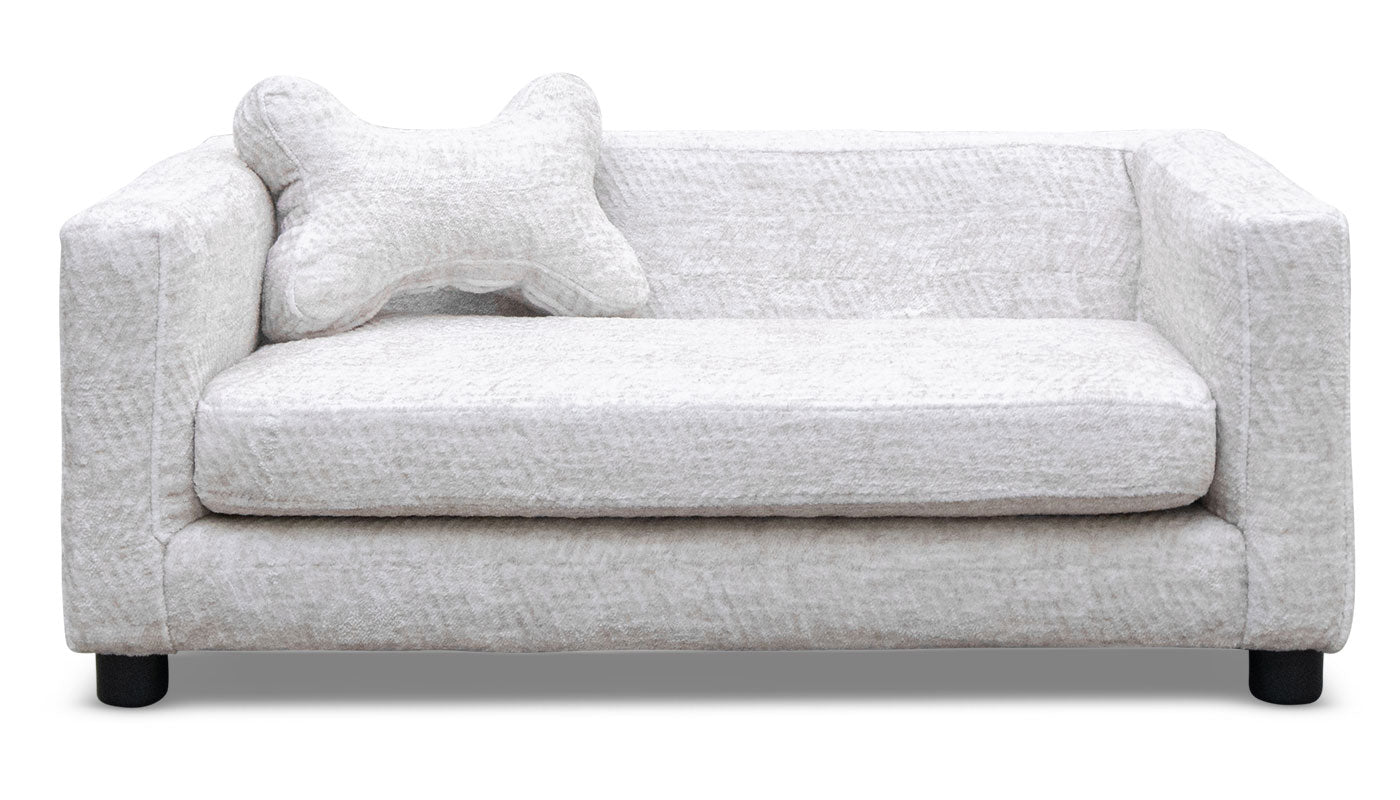 We believe all dogs deserve a special spot in your living space, and our Slip Cover Dog Sofa is a perfect choice. Crafted with your furry friend in mind, our dog sofa is soft enough that your pup can get cozy but not so plush that they have difficulty getting up and down. The slipcover is easily removable and washable, making cleaning up a breeze. Say goodbye to the worries of dirty paws - simply remove the cover, bring it to your local dry cleaner, and enjoy a fresh, clean look! Designer bone pillow included at no additional charge. Available in Ash, Pearl, and Midnight.