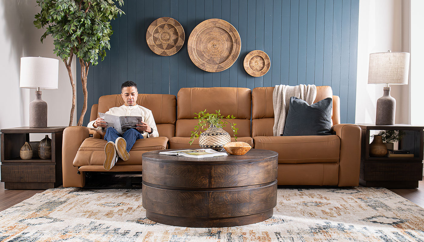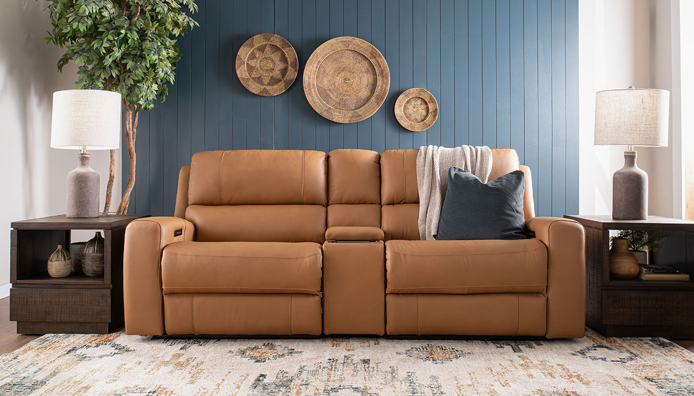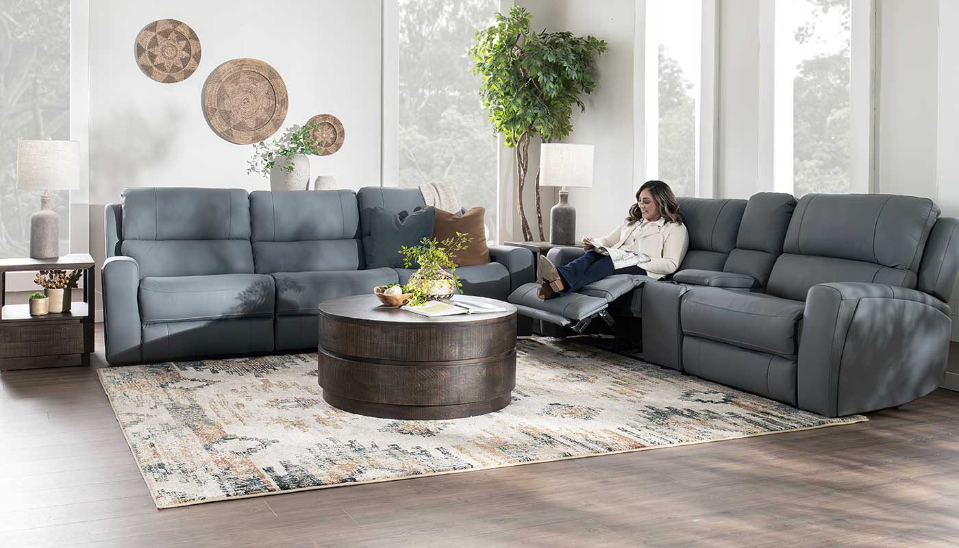 Discover the epitome of luxury and relaxation with our Goliath Zero Gravity leather power reclining sectional. This sectional is constructed using high-quality materials and upholstered in Top Grain Leather. What separates our Goliath collection from other sectionals? It is equipped with a Zero Gravity recline. This feature allows you to achieve the zero gravity position with your legs elevated and your back relaxed. The Zero Gravity recline position has many health benefits — relief from lower back pain, helps regulate high blood pressure, improves posture, and enhances blood circulation, which can help reduce pain and swelling in your legs and feet. The power headrest further enhances your relaxation experience by providing adjustable head and neck support, ensuring optimal comfort while watching TV, reading, or simply unwinding. Our Goliath collection takes functionality to a new level with a console that features hidden cup holders, storage, and a wireless charging station. These features allow you to comfortably work or enjoy entertainment while keeping your devices powered and your living room tidy. With its modular design, convenient console with storage, and adjustable reclining positions, our Goliath power reclining sectional is designed to provide you with the ultimate lounging experience! Available in blue grey, cream, and saddle brown.