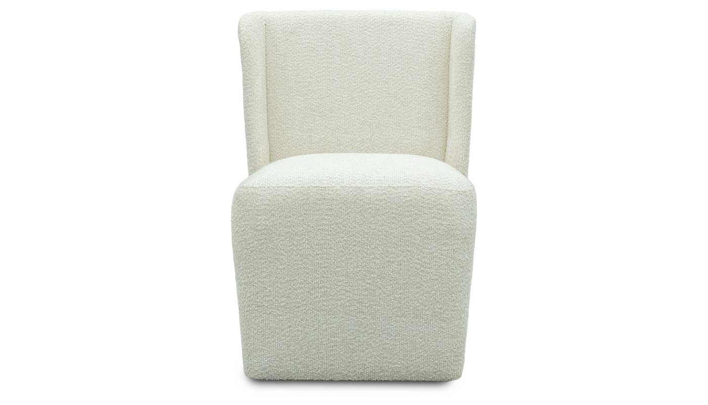 Our Mila dining chairs blend modern sophistication with timeless style, making them a versatile addition to any dining space. Upholstered in a soft-textured performance fabric, these chairs are perfect for families with children—durable, stain-resistant, and easy to maintain. Gently curved lines add comfort and visual appeal, while built-in caster wheels allow for effortless movement and flexible seating arrangements. Stylish, practical, and comfortable, our Mila chairs are designed for everyday living with elevated appeal. Compare our Mila dining chairs to the Mila chairs by Arhaus!