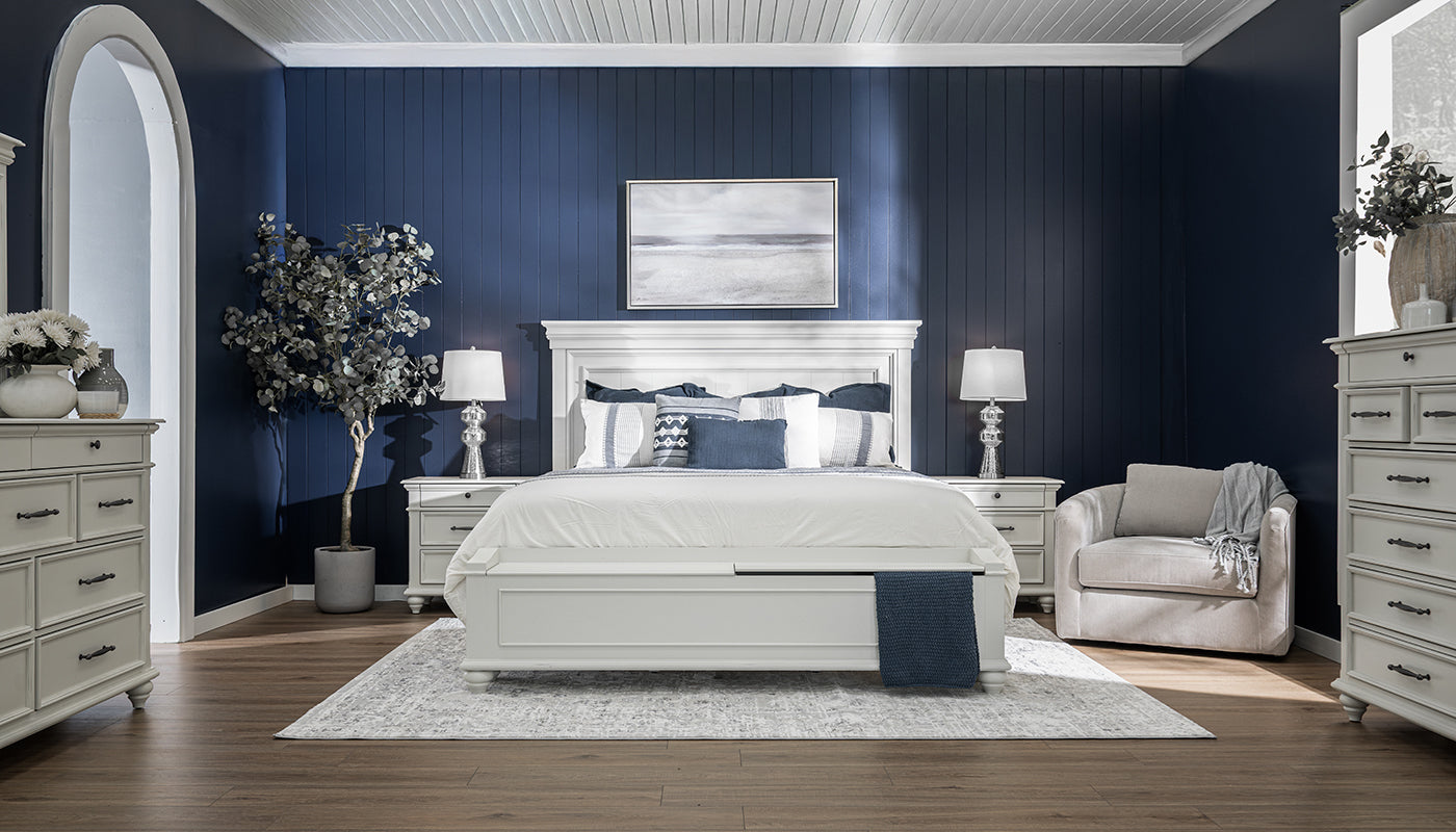 Our Oyster Bay vintage collection brings the best of the past into the present. Each piece is hand-finished using a durable combination of solid wood and Rubberwood veneers. The bed features a built-in bench with storage, and the drawers are English dovetailed for extra strength. Our Oyster Bay collection is as functional as it is beautiful. Best of all, you'll love the price!