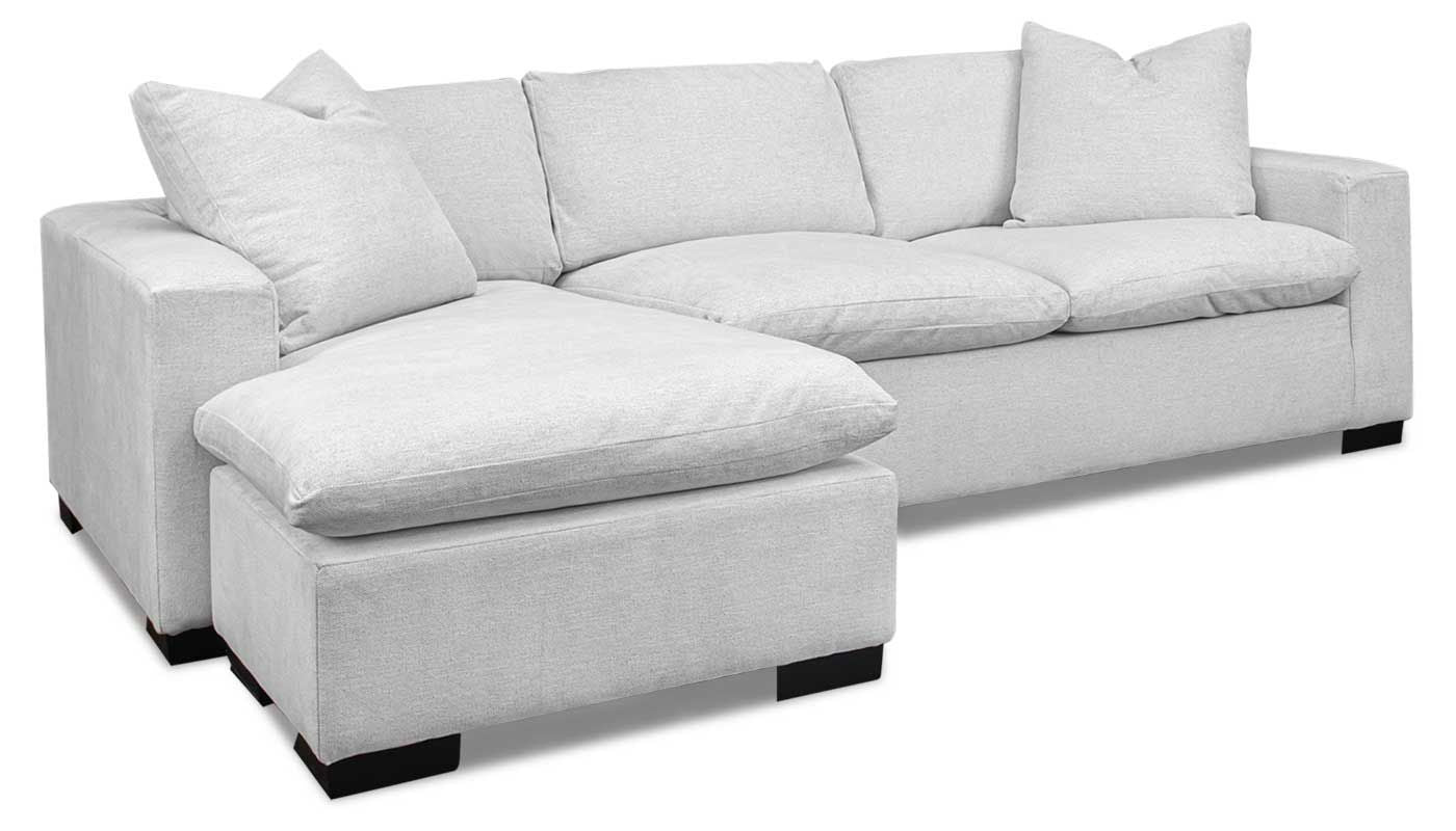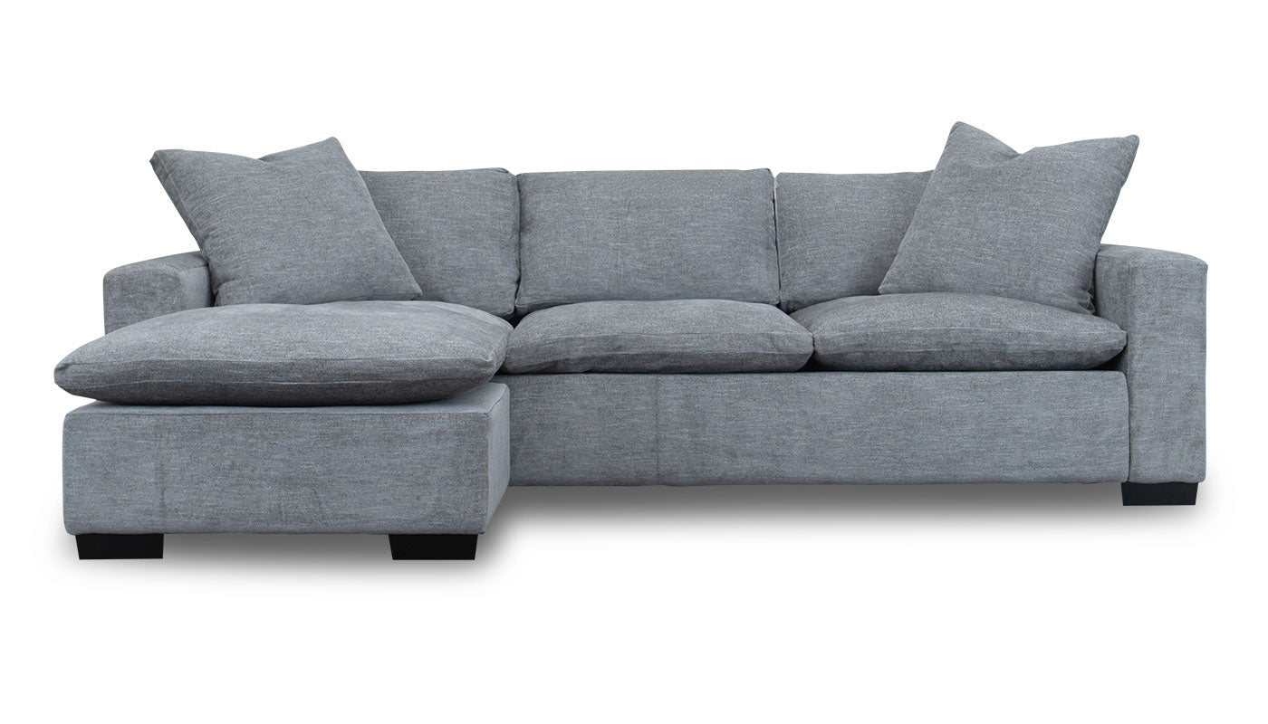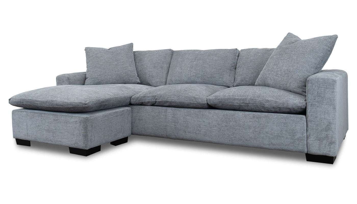 Our Sheffield sectional is a versatile and stylish furniture piece designed for comfort and adaptability. Its standout features include bagged and baffled back cushions, providing a plush and supportive feel. The sectional also boasts a floating chaise that can be effortlessly moved to either side, allowing for customizable seating arrangements to suit your preferences. For an indulgent seating experience, both the back and seat cushions are generously filled with a blend of down and feather, ensuring a soft and luxurious feel. The hand upholstery in a family-friendly fabric not only adds a touch of sophistication but also makes it practical for households with varying needs. Convenience meets practicality with removable seat and back cushions, allowing for easy maintenance. These cushions are machine washable on a cold cycle, and hanging them to dry ensures a hassle-free cleaning process, promoting a clean and inviting living space. (Do not machine dry.) To enhance the overall aesthetic and comfort, the Sheffield sectional comes with oversized throw pillows that are filled with down and feathers, providing extra coziness and a visually appealing touch to your living area. With its blend of style, comfort, and functionality, our Sheffield sectional is a delightful addition to any home. Built by skilled Texan artisans with you and your family in mind! Available in two colors - snow and steel.