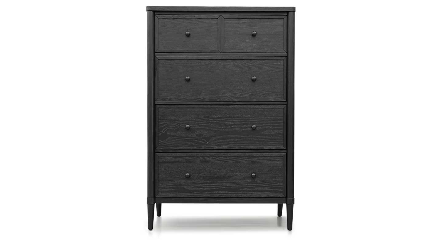 Transform your bedroom into a haven of organization and sophistication with the Willow bedroom collection, where form meets function in perfect harmony. With multiple configurations to choose from, this collection offers the perfect blend of functionality and style. Crafted with precision, each piece in the Willow Collection is constructed using pine solids and adorned with an Oak veneer, ensuring both durability and visual appeal. Experience the ultimate in organization with the panel bed featuring convenient side storage options, while the dresser, 3-drawer chest, and 4-drawer chest provide ample space to stow away your belongings. The nightstand with USB charging capability keeps your devices powered up. Enhanced with French and English dovetail joints, the case goods in the Willow collection boast superior craftsmanship, guaranteeing lasting quality. The Kenlin drawer glide ensures smooth and quiet operation, while the painted drawer interiors add a touch of refinement to each piece. Complete your bedroom oasis with the addition of the bench and floor mirror, providing the perfect finishing touches to your space. Our Willow bedroom collection is a versatile ensemble designed to cater to your every storage need while radiating timeless beauty throughout your space.